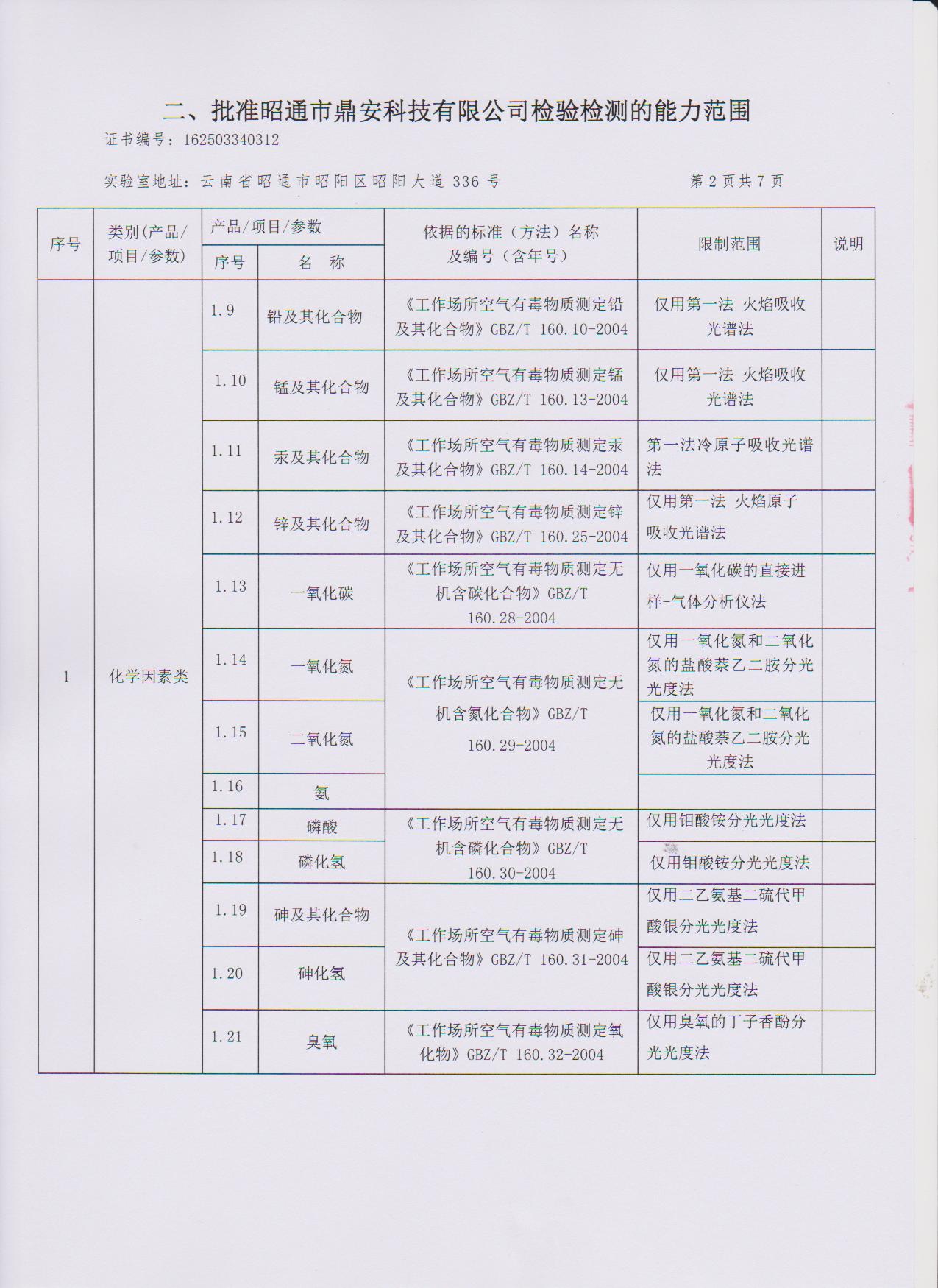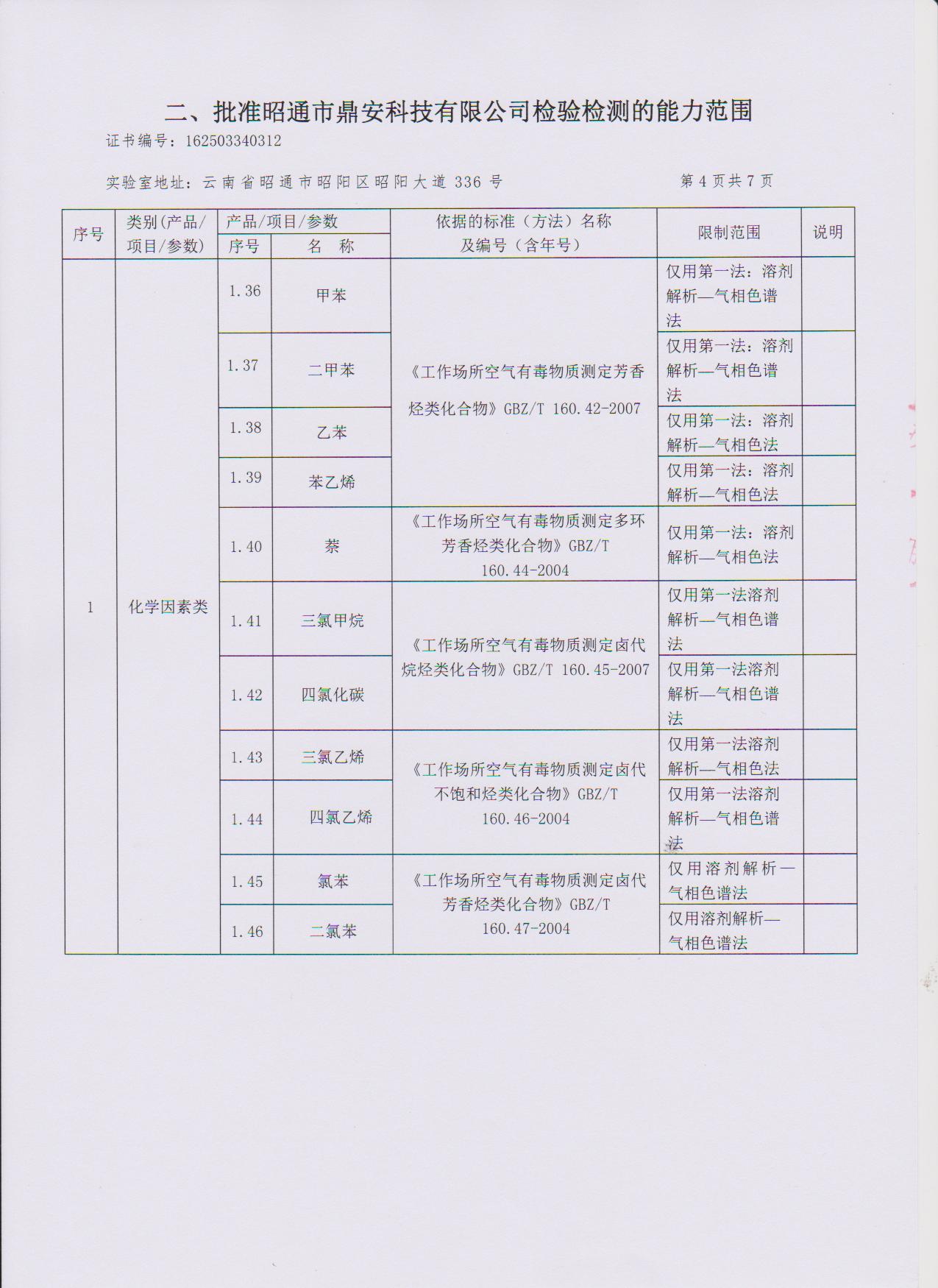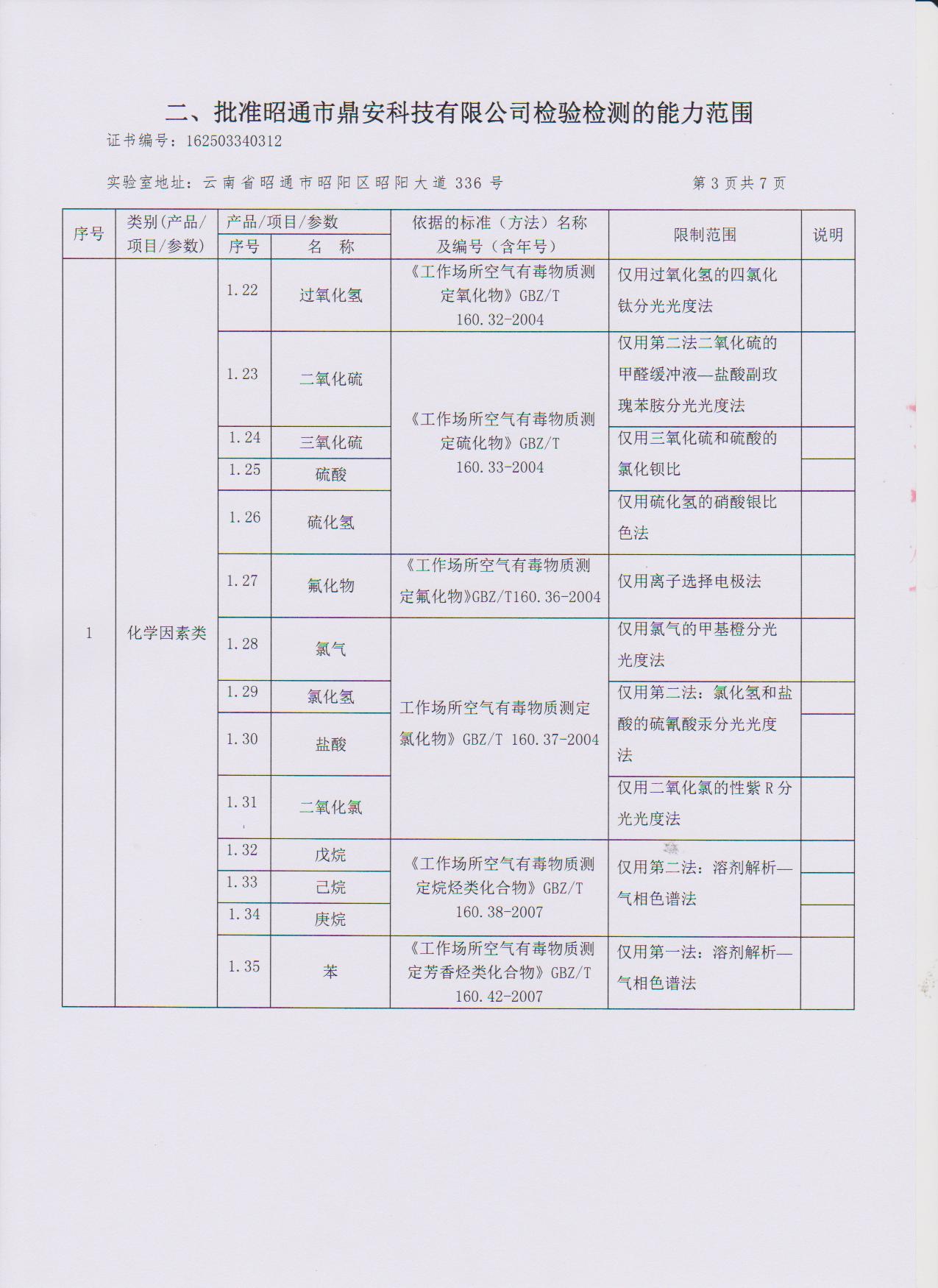 經技術評審審核認定的檢測項目(第一類業務 合計110項)