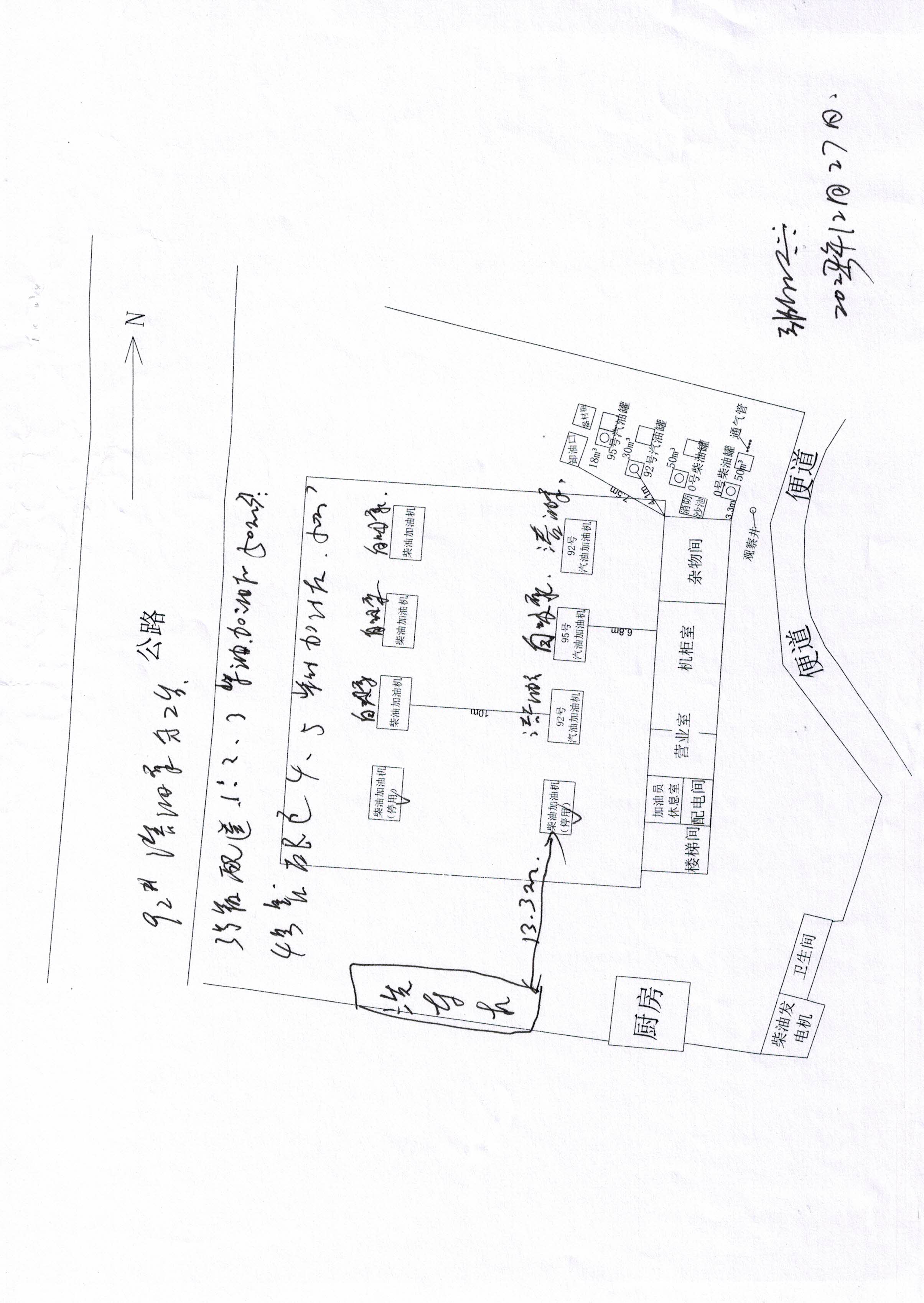 隱患: (1)加油機內部的汽油油氣回收真空泵外殼未接地。(2)加油機內部的柴油自吸泵未接地。 (3)積液桶下部的排液閥未上絲堵。(4)95#汽油罐操作井內的油氣回收管標識錯誤。 (5)發電機房內的絕緣手套老化破損。 | ||||||||