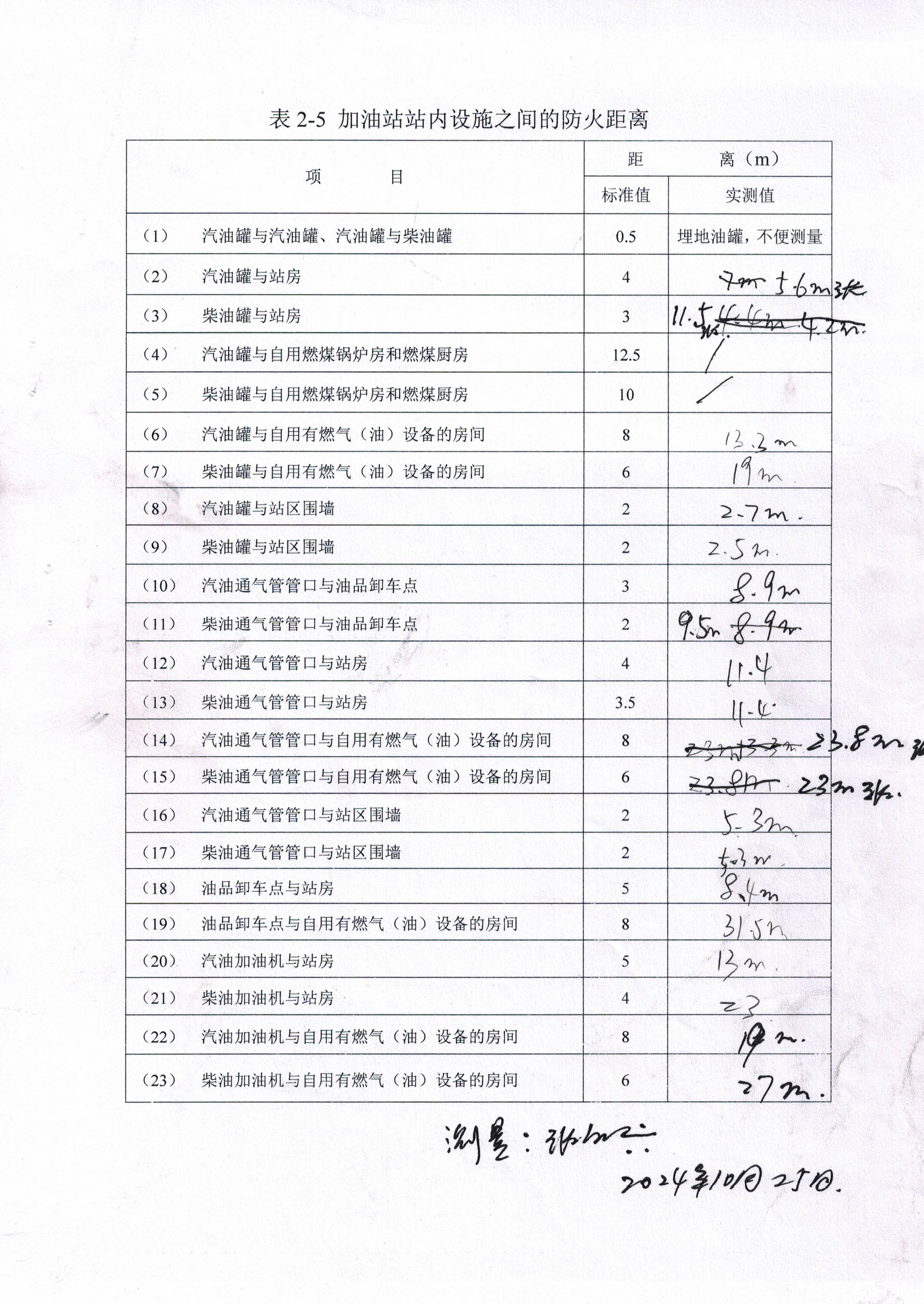 整改措施建議:(1)拆除電氣線路,停用加油區汽車衡。(2)發電機排氣管口加長伸出加油站東側圍墻。(3)調整汽油加油機可燃氣體探測儀安裝高度距地面0.3~0.6m。(4)發電機定期進行試運行維護保養,并填寫維護保養記錄。(5)重新涂刷加油區與輔助服務區之間界線標識。(6)重新涂刷油罐區操作井蓋油品名稱標識。 | ||||||||